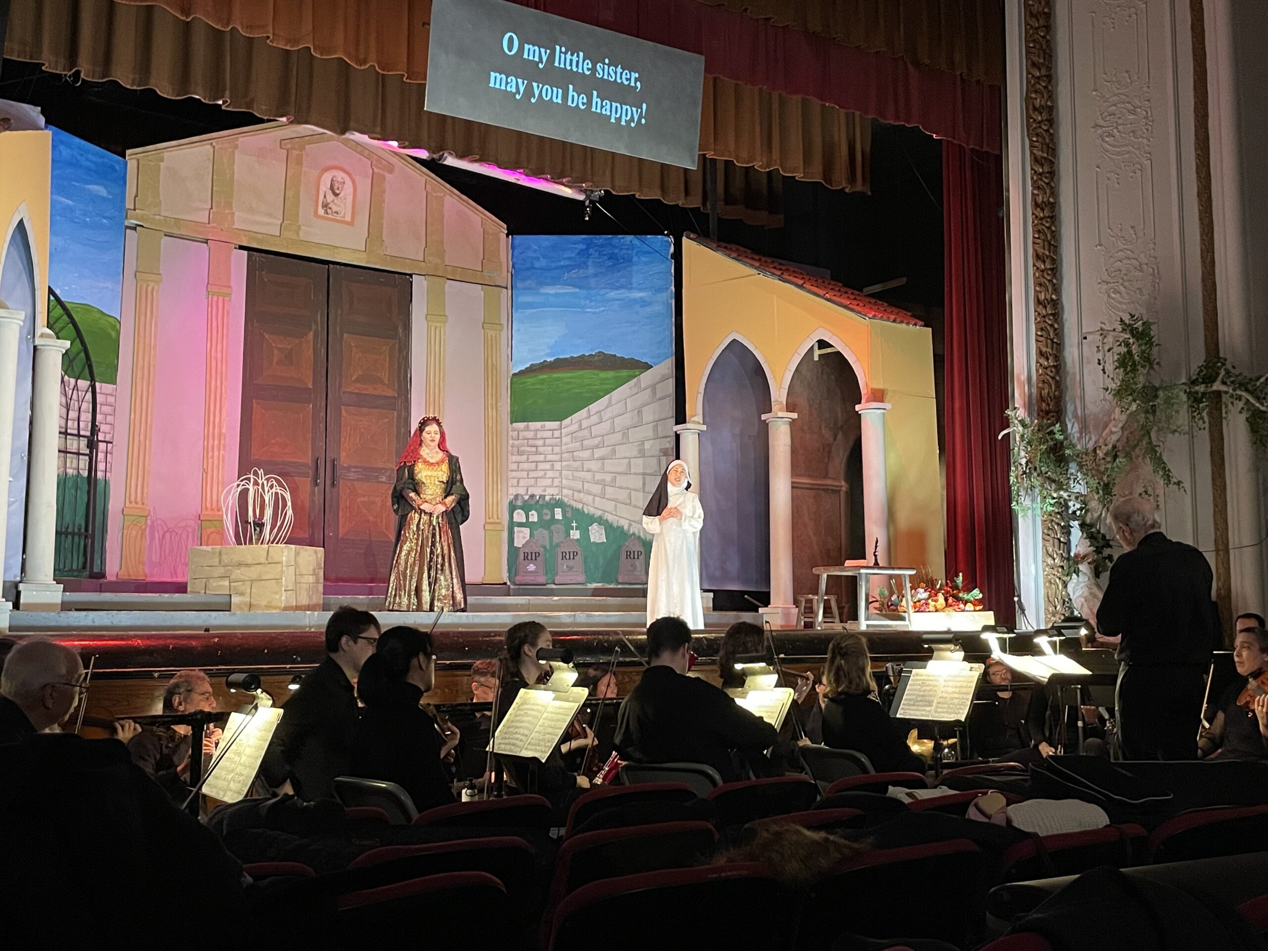 The operatic event began with two individual soloist presentations. Anna Lien played the harp and performed George Frideric Handel’s Concerto for Harp in B-Flat Major, op. 4, no. 6, and Nathan McKinstry, who was once a member of the Regina Opera and now plays for the Met Opera Orchestra, played the trumpet for Franz Joseph Haydn’s Concerto for Trumpet in E-Flat Major, Hob. VIIe/1. Scott Jackson Wiley was the conductor for both performances and the opera. After an intermission and a raffle, the main event, Suor Angelica, began.