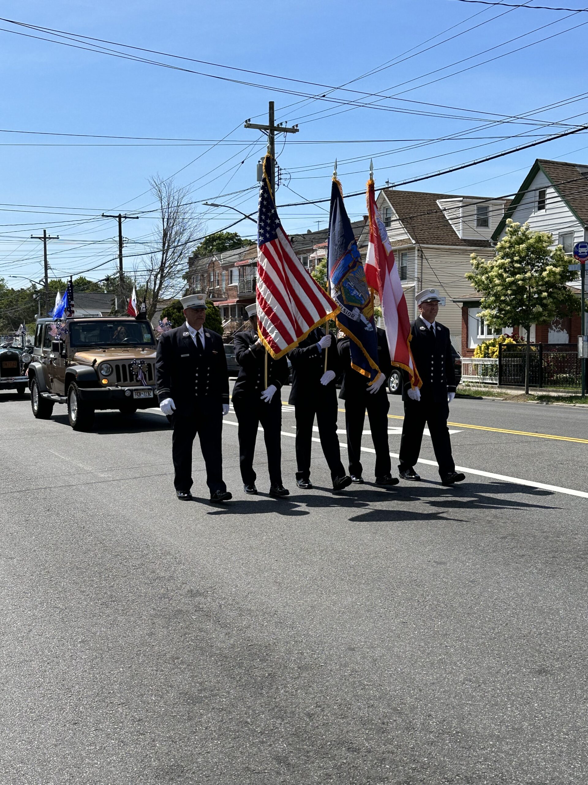 The parade headed southbound on East 98th Street to Avenue L, turned right and headed to Remsen Avenue and then on to the Canarsie Cemetery. Everyone paused to honor our fallen heroes and to lay a wreath near the war monument in their memory.