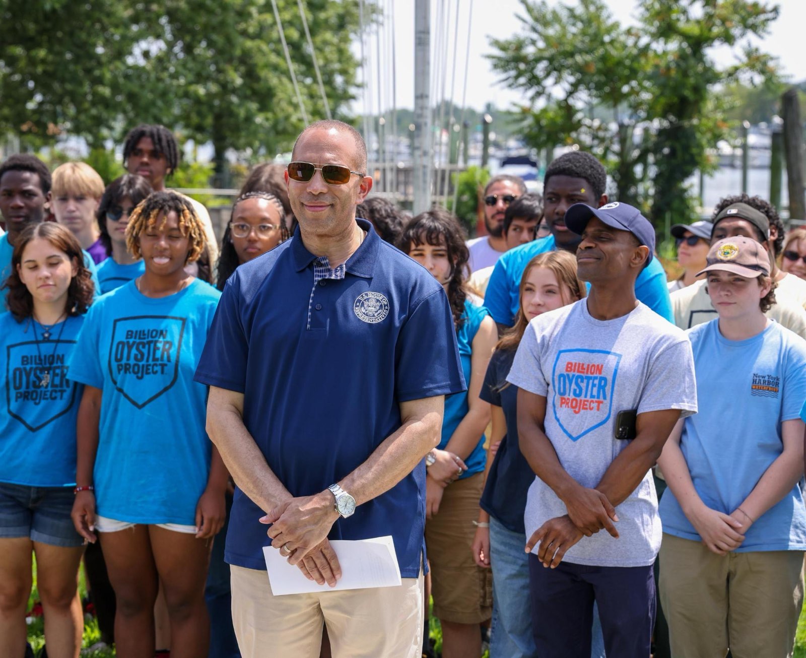 Congressman Hakeem Jeffries (NY-08) announced nearly $1 million in funding secured in the Fiscal Year 2024 government funding bill for the Billion Oyster Project’s restoration of the Paerdegat Oyster Reef for STEM Education and Coastal Protection. The announcement took place at the Paerdegat Yacht Club, at 1330 Paerdegat Avenue North, on Wednesday, August 14th.