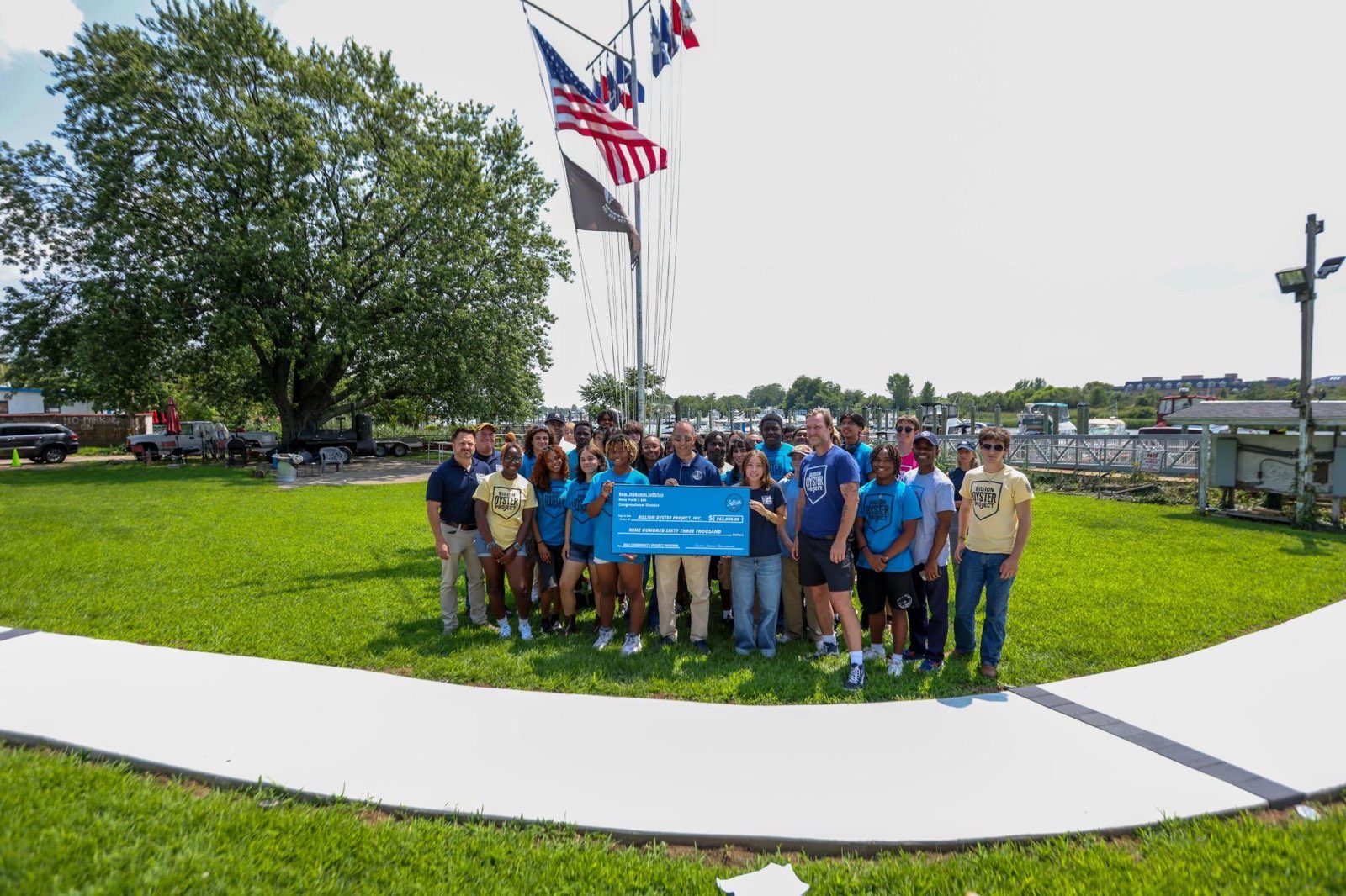 “And that is why, in connection with this project and on behalf of these brilliant students from the Harbor School who represent our future in this community, in this city and in this country, it’s my honor to join you and present this check to the Billion Oyster Project for $963,000,” Jeffries said.