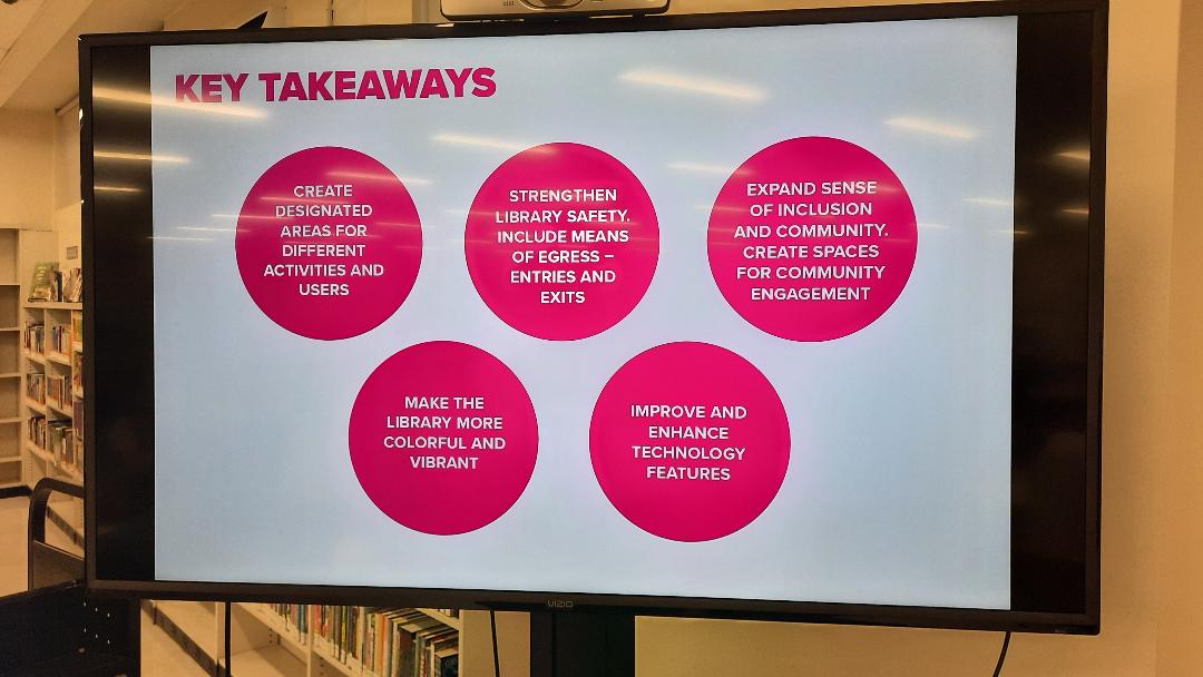 Most were in agreement that the library should have designated areas for adults and children, as well as more closed rooms. A spokesperson for one table said they would like to see dedicated trained staff for children 18 and under since their needs are different, while another patron said they would like to see computer literacy programs for seniors.
