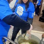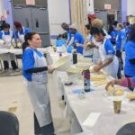 Dressed in blue t-shirts with the slogan “Tolerance, Inclusion, Diversity” emblazoned on an image representing Dr. King, the volunteers, in his honor and the true spirit of community and service, rolled up their sleeves and set to work. They performed a wide range of activities which ran the gamut from preparing 1,000 customized care packages (to be distributed to various groups including shelters and schools) and packing 150 pantry food hampers (that were also delivered to clients in the community), to making 200 containers of vegetable soup, and baking dozens of cookies and 70 challah breads, for elderly residents at a senior home in Starrett City.