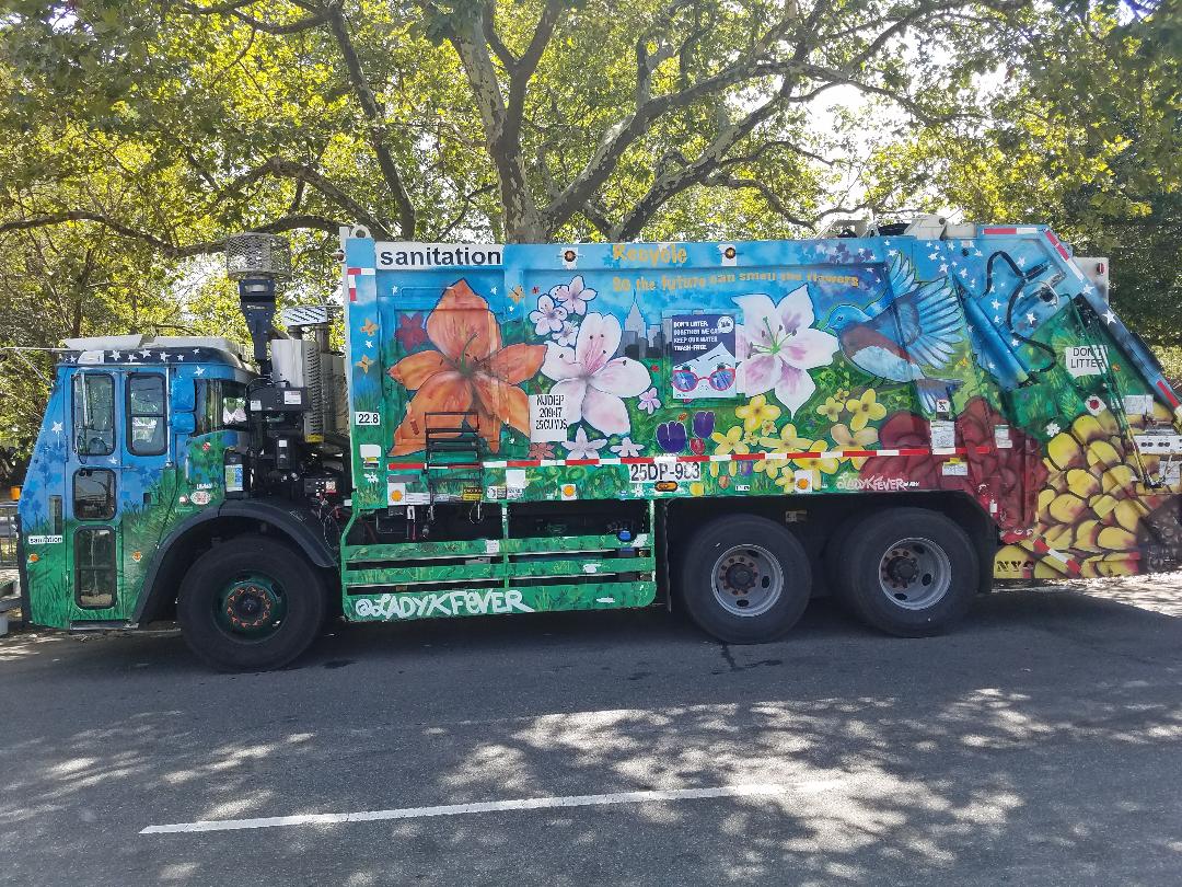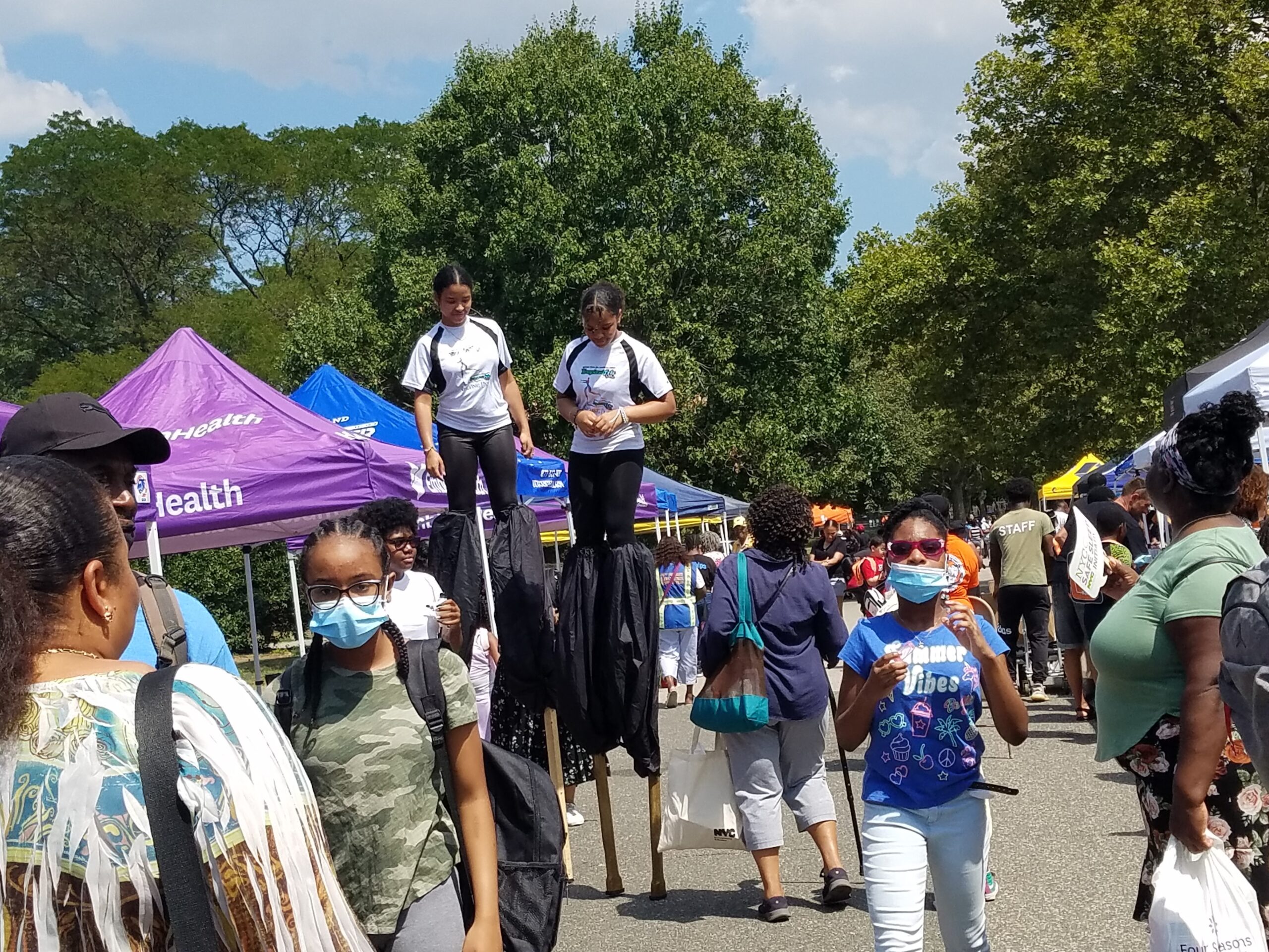Even though it was a scorching day, the children had no problem climbing up and down a huge rock wall provided by the NYPD or joining a couple of Stilt Walkers as they performed a spritely dance. There was also a beautifully decorated truck, supplied by DSNY, which conveyed messages about the importance of recycling and saving the planet.