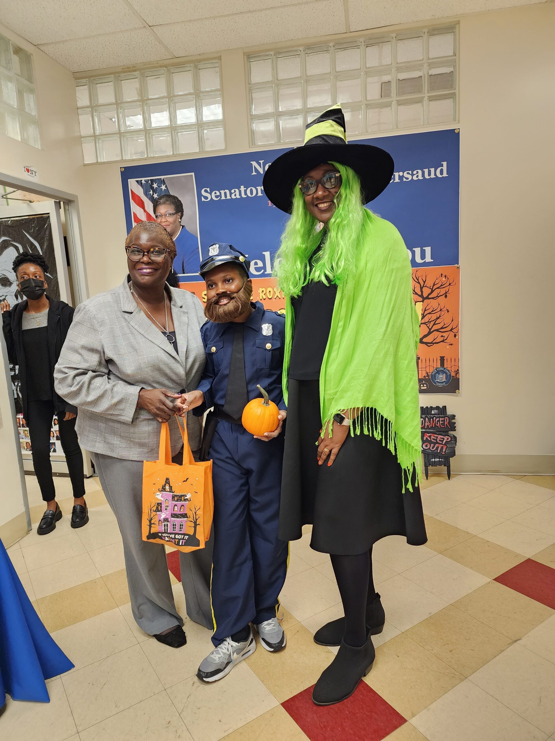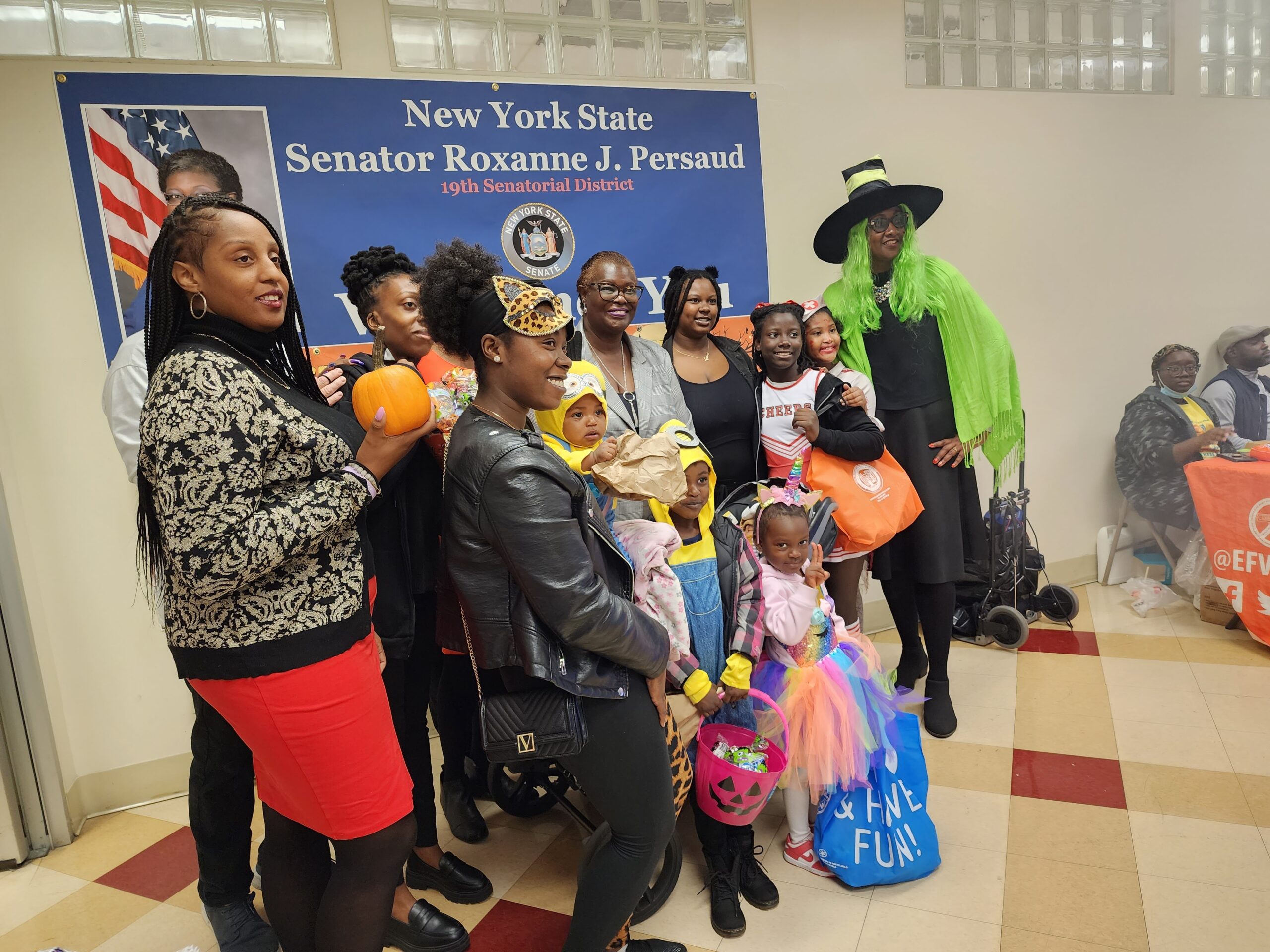 Community partners, NYC Administration for Children’s Services (ACS), Hebrew Educational Society (H.E.S.) and East Flatbush Village, contributed to the popular, annual trick-or-treat bash. In addition to the sweet treats, the groups handed out bags of fresh-popped popcorn, PPE items and pamphlets regarding diabetes, breast cancer and high blood pressure. The children also chose a favorite storybook and posed for a quick snapshot with the senator and staff.