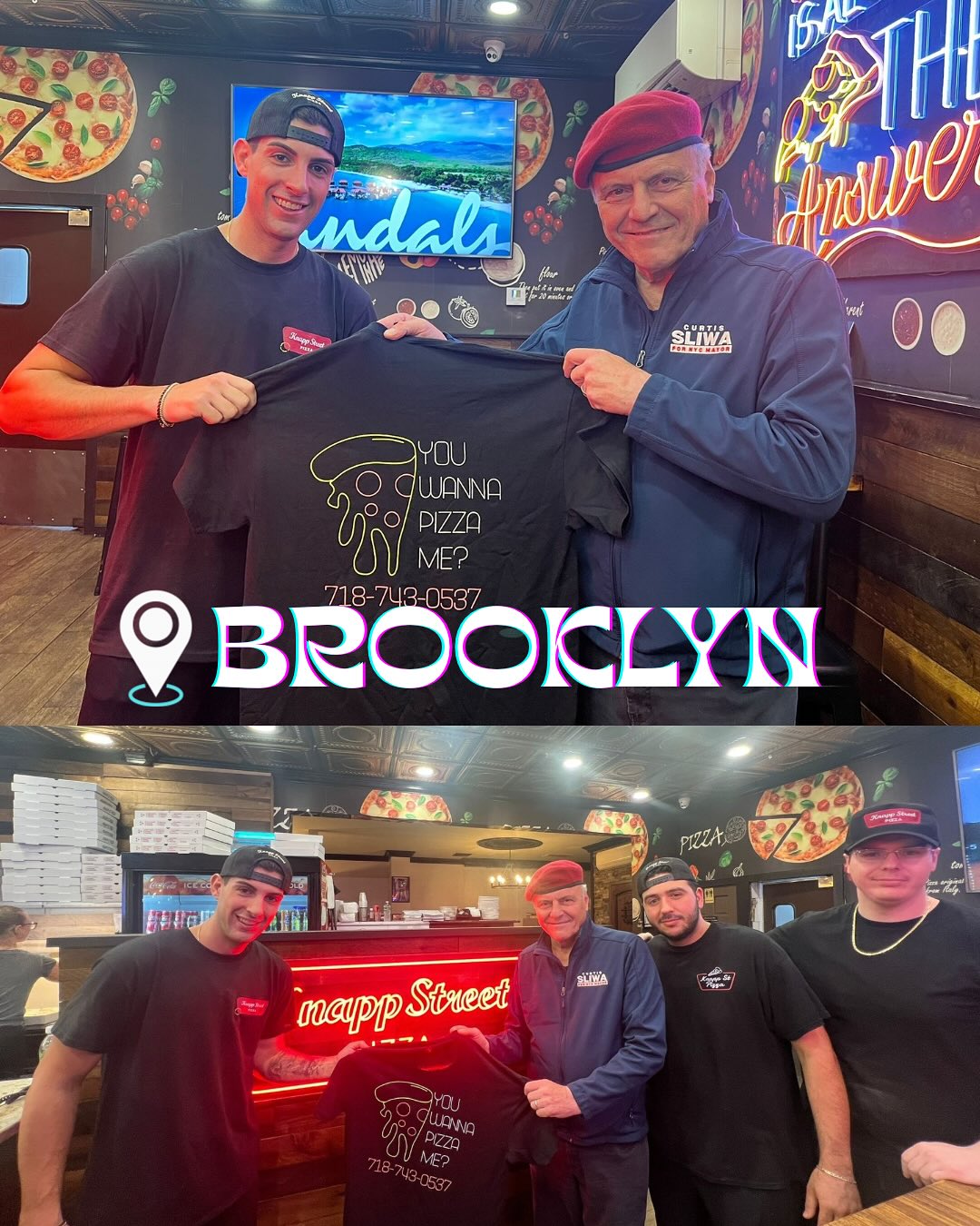 Before the rally, Sliwa stopped at Knapp Street Pizza — a local neighborhood favorite — joking with supporters, “You wanna pizza me?” Sliwa checked in with protestors, thanking Brooklynites for their support and loyal backing. “No, thank you, Mr. Sliwa, for supporting us,” one of the residents at the shelter site said.