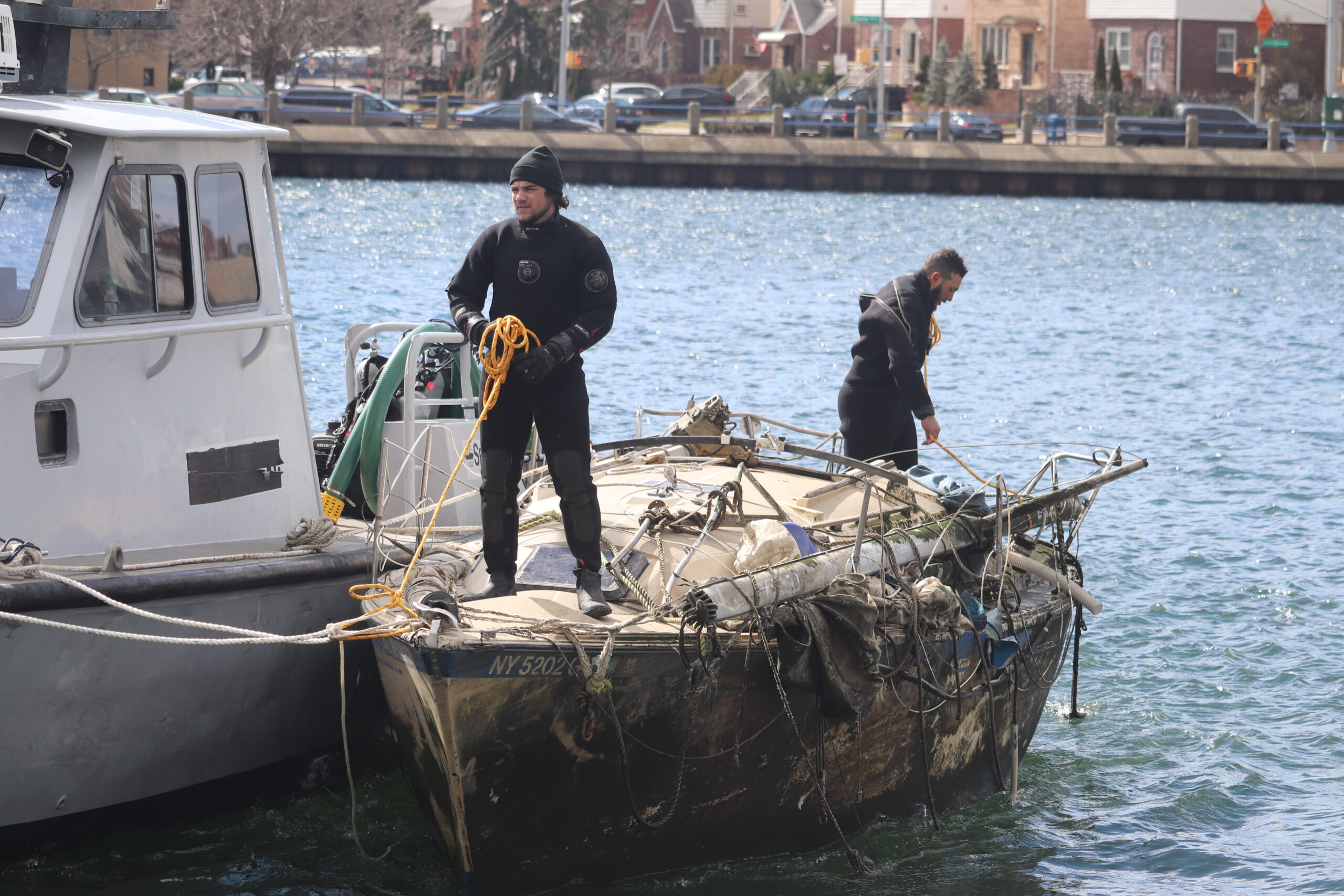 On Friday, February 24th, NYC Parks Chief of Waterfront and Marine Operations Nate Grove and Councilwoman Inna Vernikov teamed up to have three derelict vessels removed from Sheepshead Bay, along Emmons Avenue, near East 21st Street.