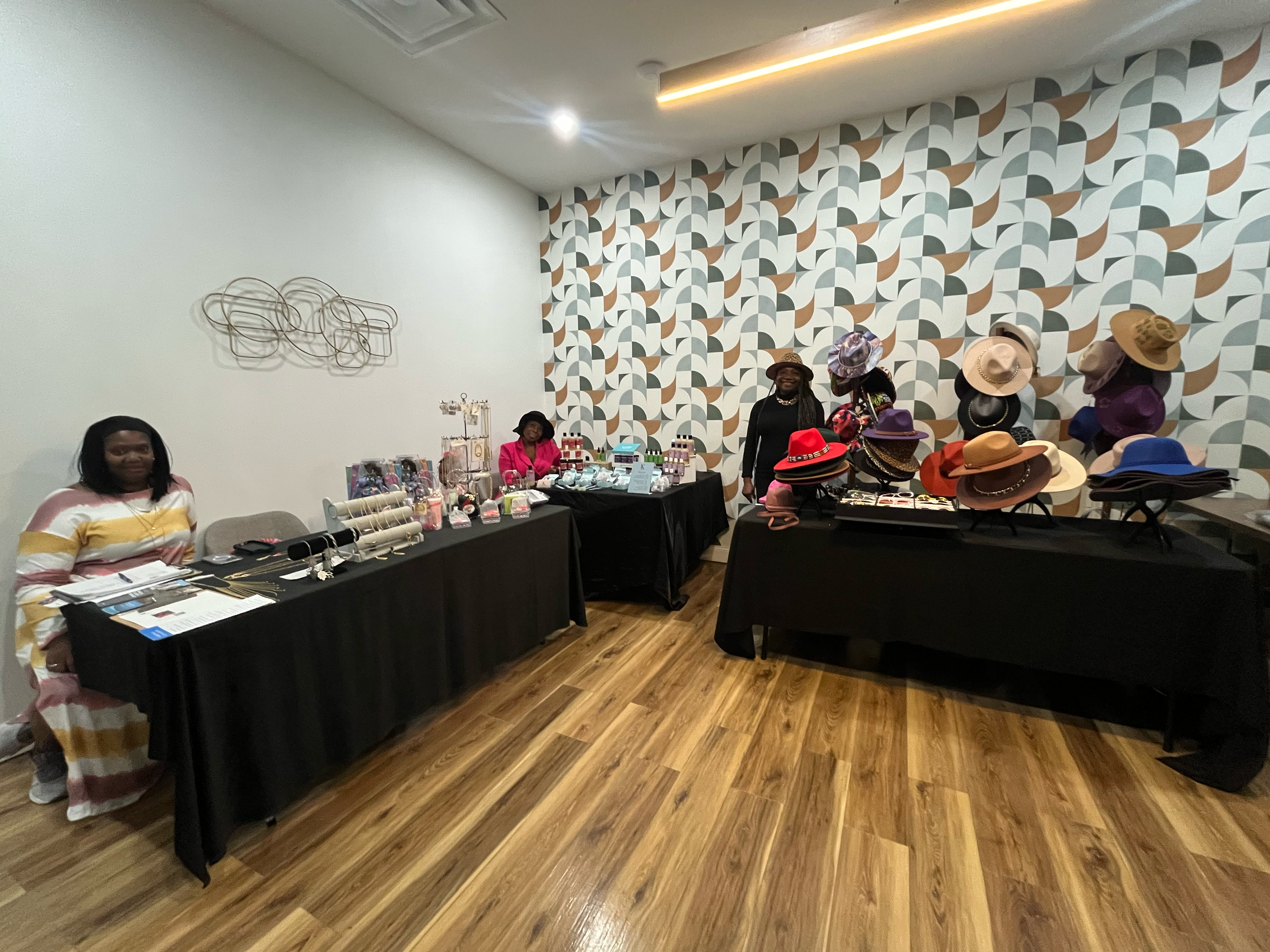 Prosperity is Paramount developed during the pandemic when Ann Marie Lewis was forced to close her daycare. Now, the longtime businesswoman sells clothing online featuring messages of inspiration. Lucky Key Spiritual Jewelry by Henry Tekin and his partner is a concept they created. The pair started in 2019 and make handmade spiritual jewelry, sharing their products at other pop-up and live events. Marilyn Fields, the owner of Creative Overflow, a former long-time educator, started her store on Pitkin Avenue a few years ago. She also sells custom-designed clothing and artwork. Wakima Bird, a financial professional with Primerica, was on-site sharing strategies for building wealth and prosperity.