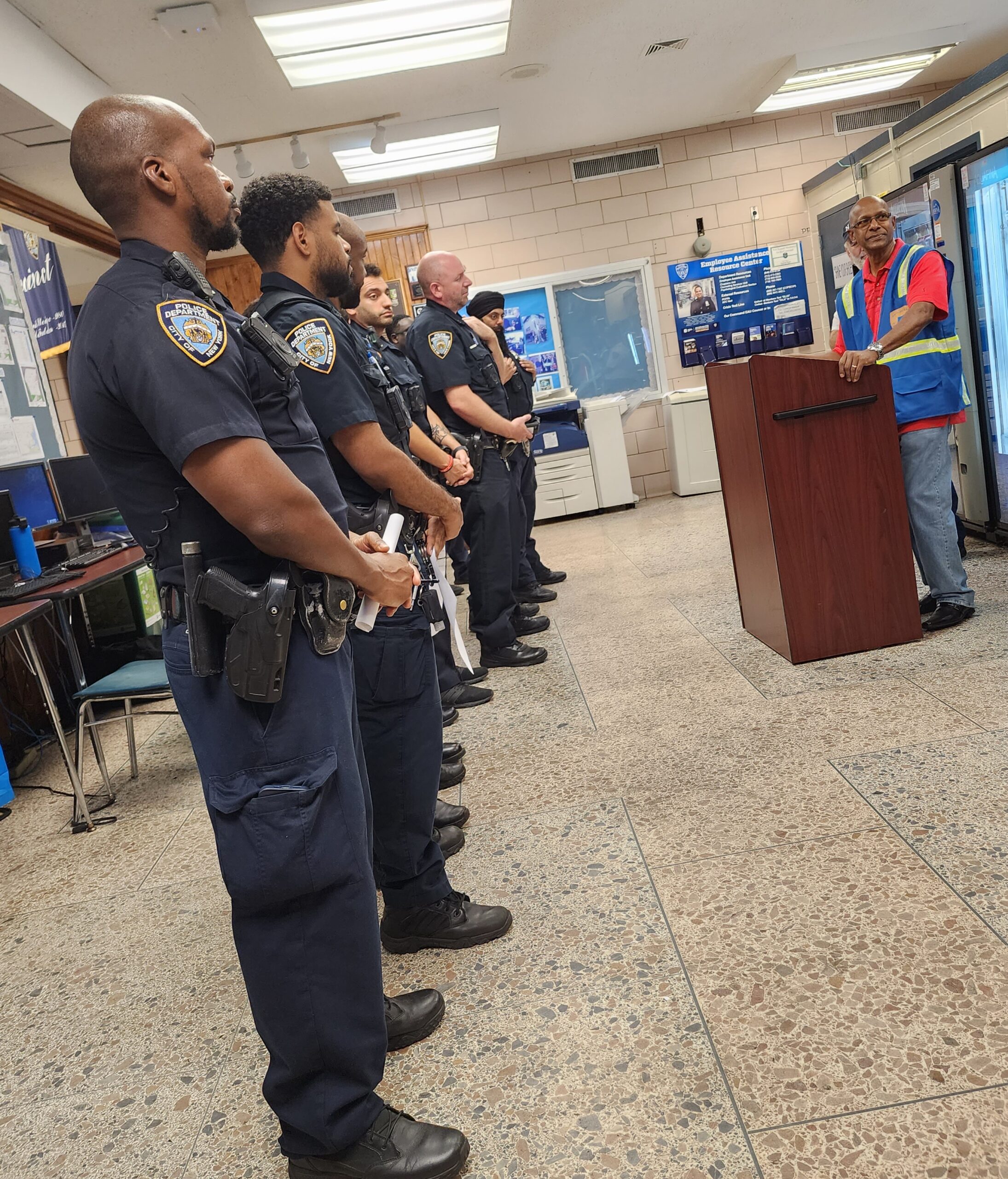 On Wednesday, September 13th, the 69th Precinct Clergy Council, led by Reverend Cecil Moonsam, convened at 9720 Foster Avenue to pray after Roll Call, for the safety of the officers, as they usually do. In addition, the Council threw a get-together to welcome the new Commanding Officer, Captain Dion Hinds.