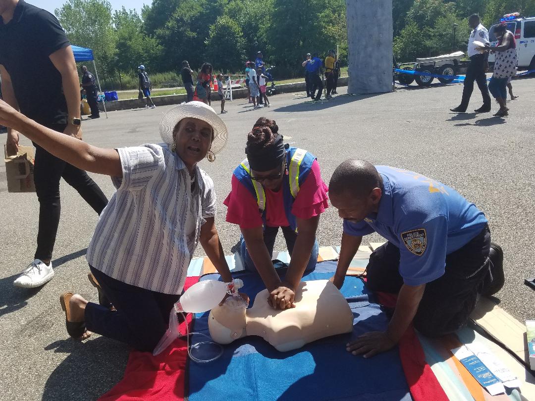The event included a raffle where the kids won tablets and additional school necessities. There was also a rock climbing wall and other fun activities for them to enjoy. Additionally, the NYPD provided CPR training to parents and children alike.