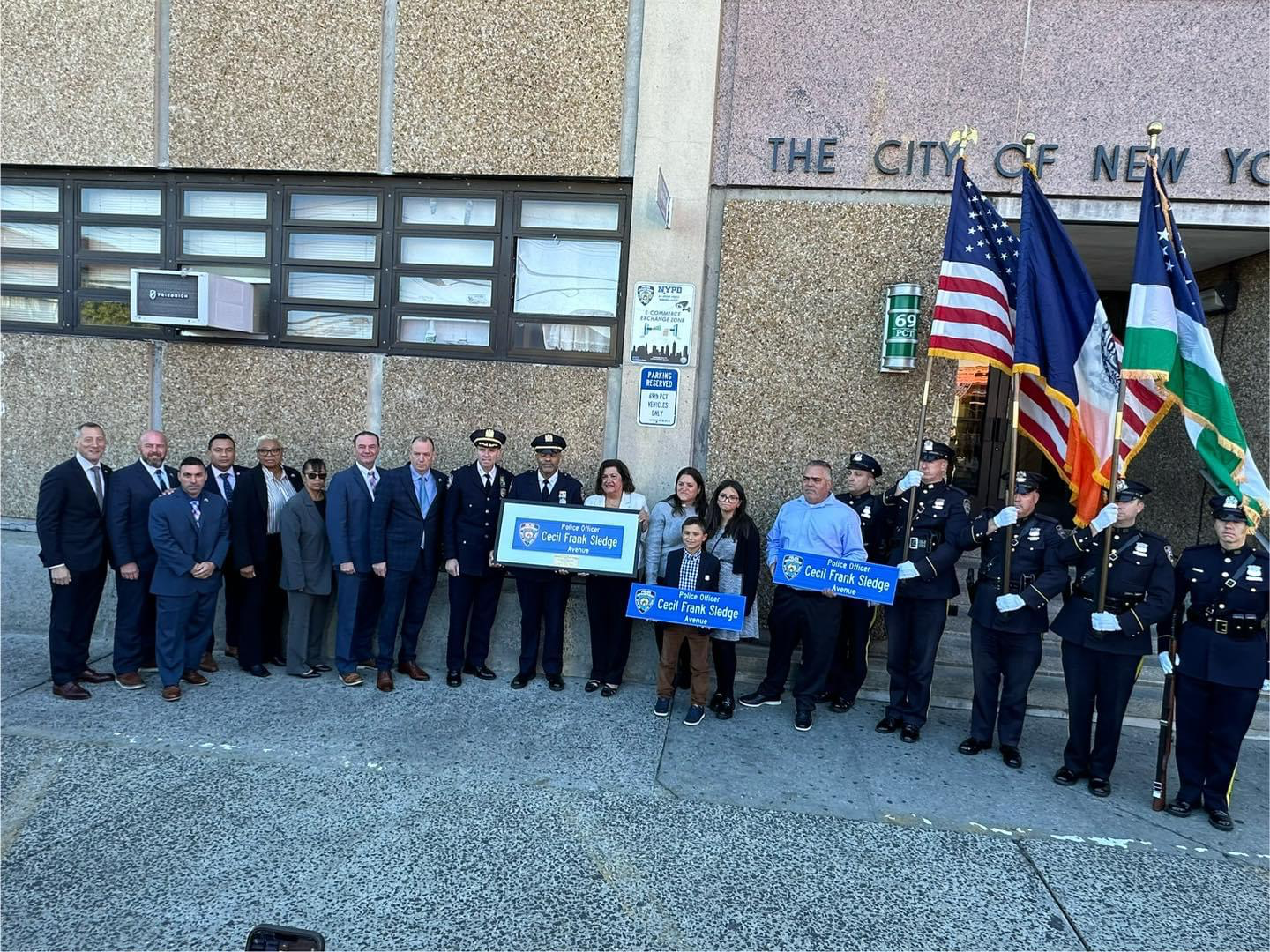 The 69th Precinct said, “We honor the legacy of Police Officer Cecil Frank Sledge as we dedicate this street in his memory. Forty-four years may have passed, but his bravery and dedication remain a guiding light in our community. We are forever thankful and will never forget.”