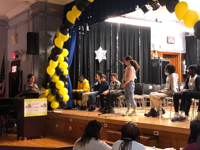 Nearly 100 students participated in the competition, which lasted more than three hours in the Daniel Mucatel School’s auditorium at 1500 East 92nd Street. Many were sharp, but words like “filibuster” and “formaldehyde” stumped even the most polished worker bee.